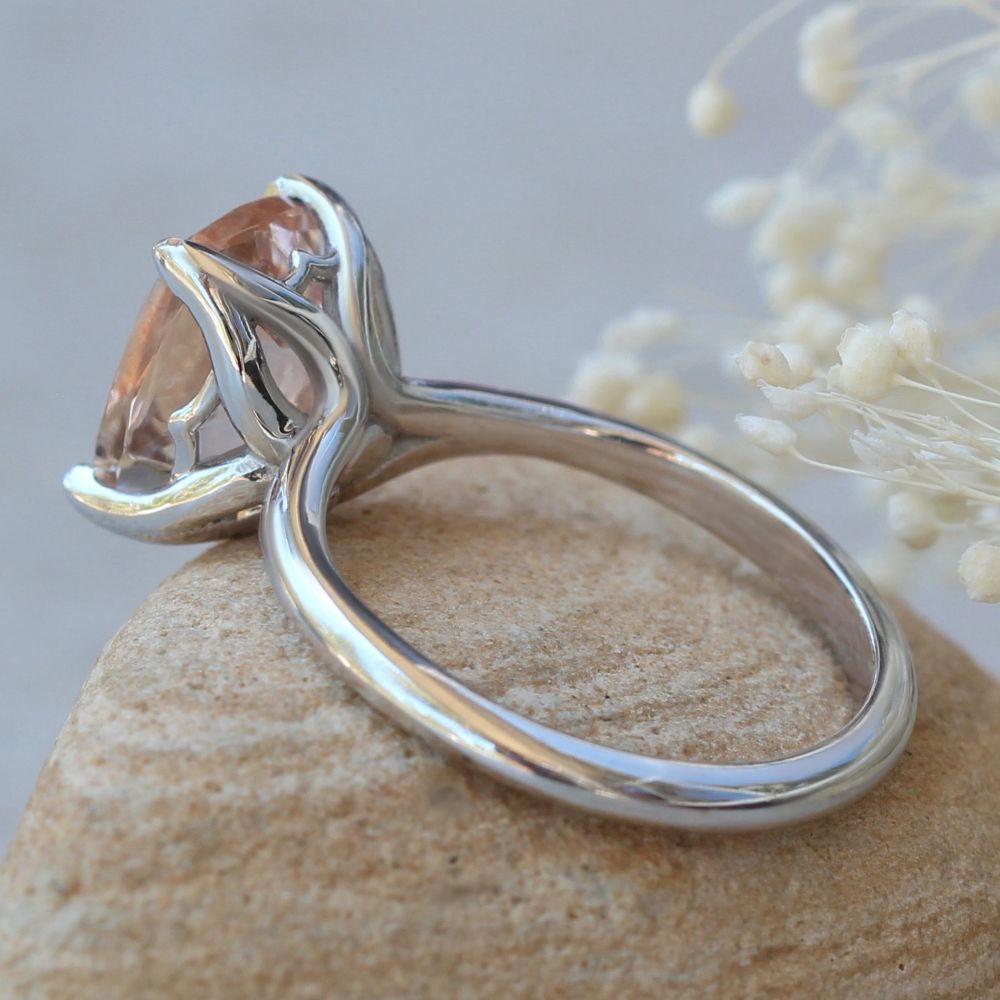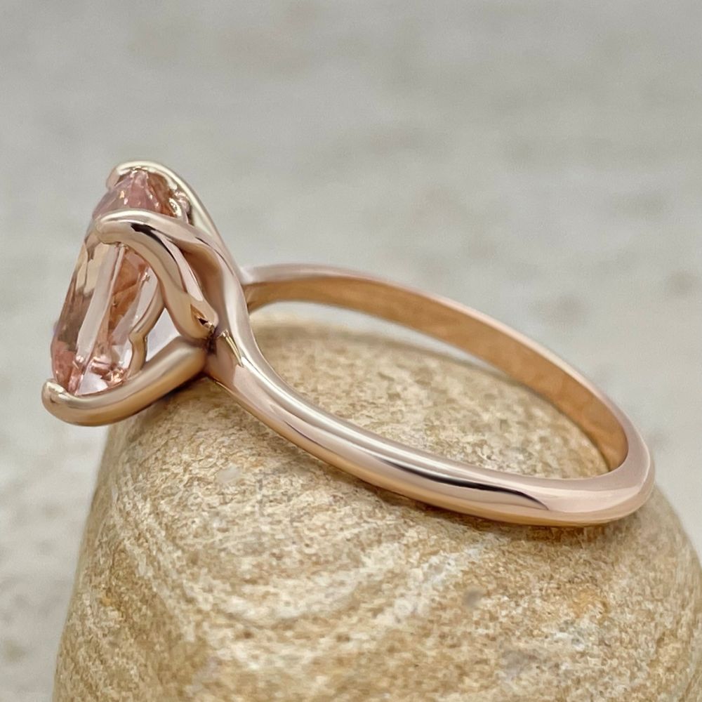 This 2 Carat Cushion Morganite Engagement Ring is part of our Lily Collection, which features a stunning center stone held by Lily Flower Petal Prongs!