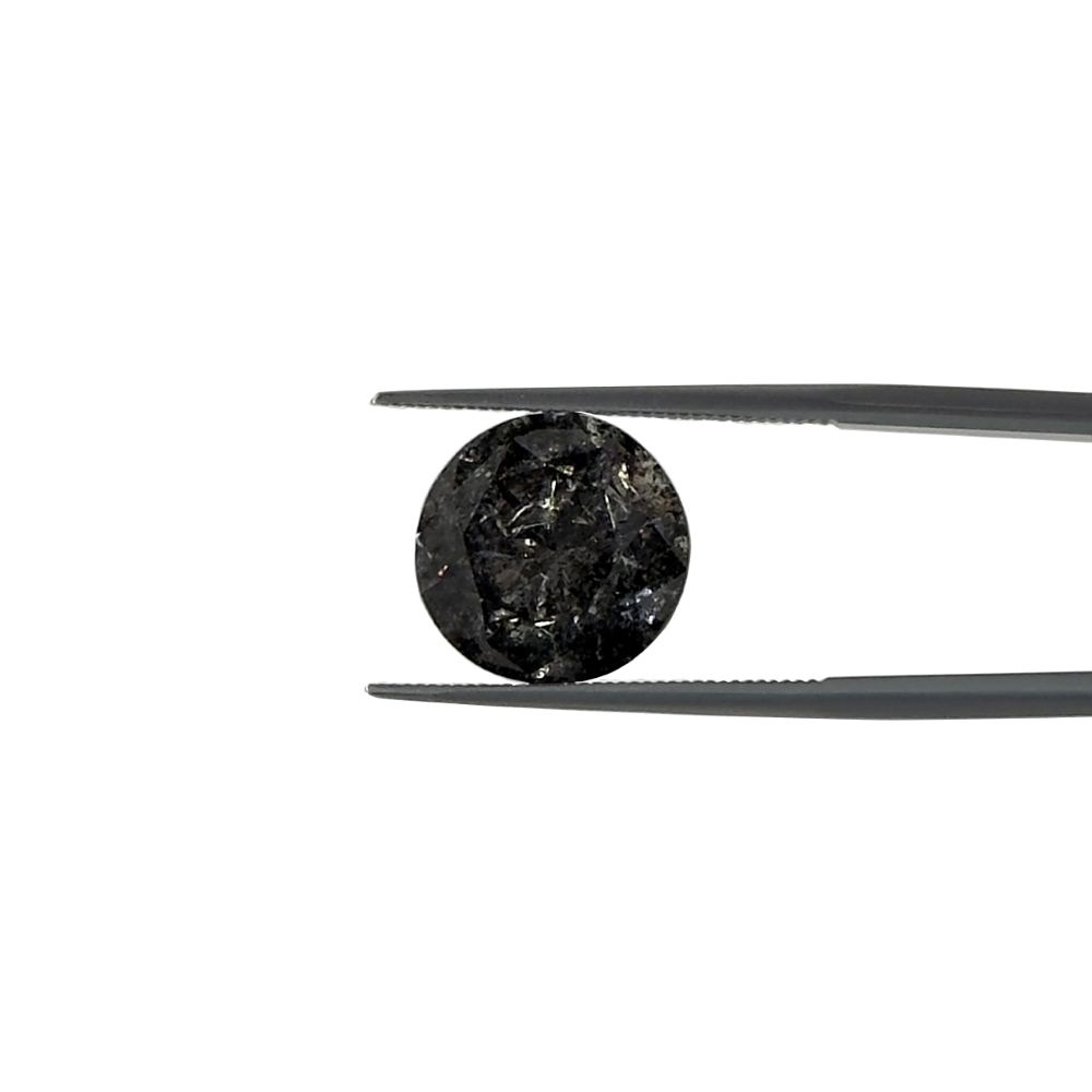 Genuine, Natural Round Full Cut Salt and Pepper Diamond, 11.02mm round and 7.75mm deep. It weighs EXACTLY 6 carats! How cool is that?