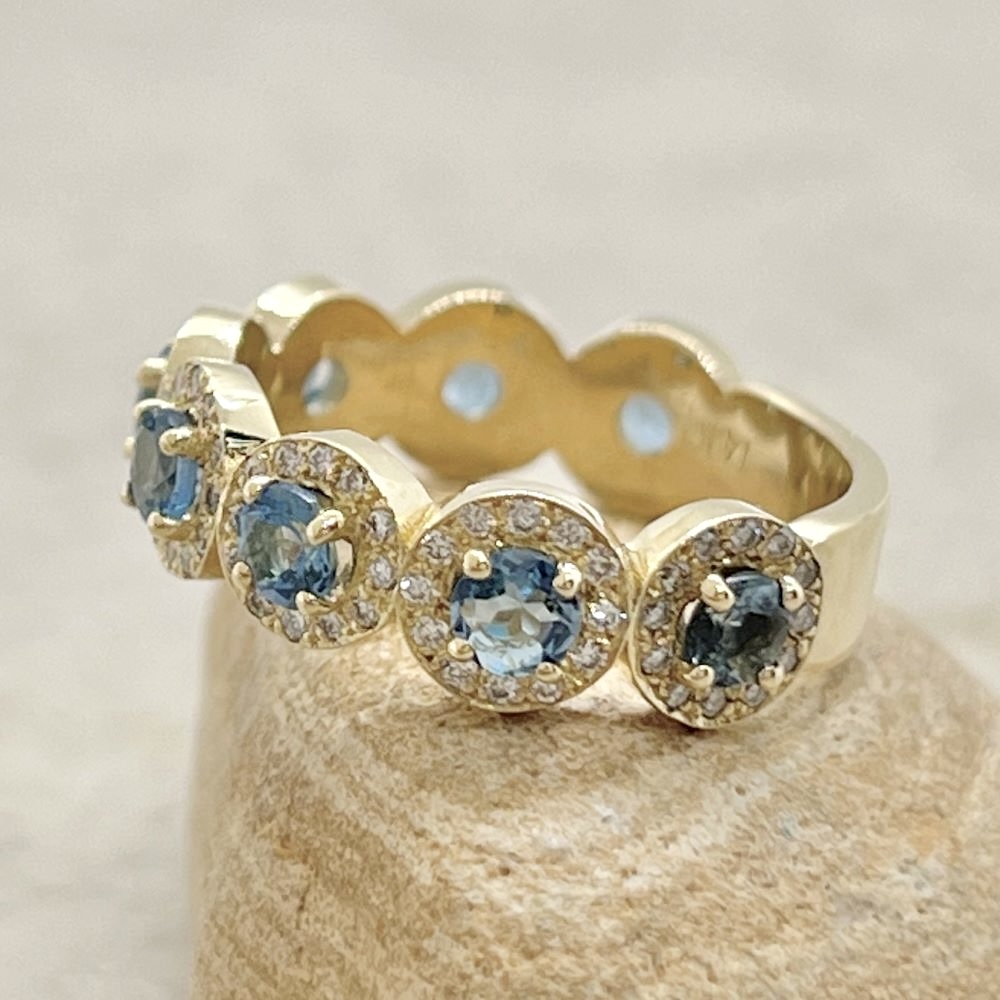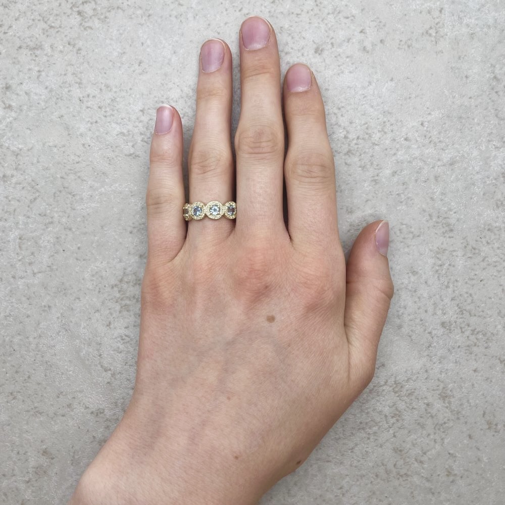 This Aquamarine Halo Ring makes the Perfect Right Hand Ring, or perfectly matches the Engagement Rings in our Angeline Collection. Or stack it with any Laurie Sarah Ring!