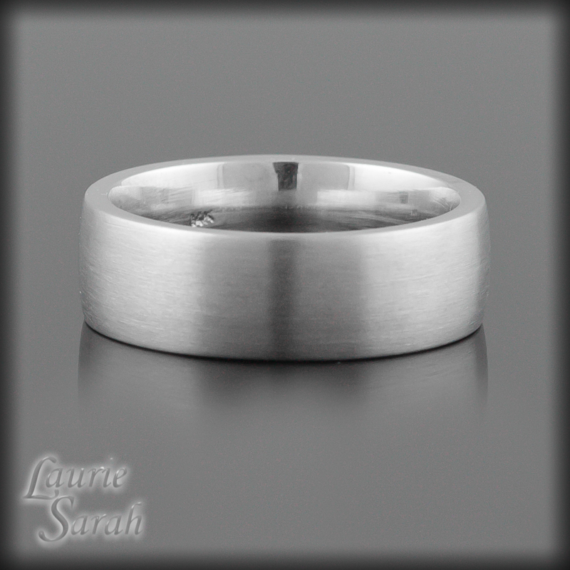 This Comfort Fit Men’s Wedding Band is great for everyday wear, or for the night on the town! It has a hand-finished brushed look. Other finishes and widths available upon request.