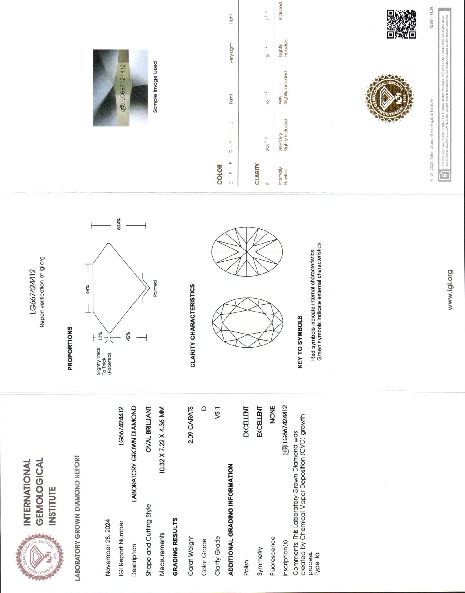 1. Fully insured shipping of your engagement ring (LS6170) and wedding ring (LS6153) to us. 2. Labor to carefully remove all stones from both rings, recast them in 14k yellow gold (size 7.5), and reset all side diamonds into both rings 3. We will be setting a Genuine Lab Grown IGI Certified 10x8mm diamond in the engagement ring instead of the morganite. A picture of the certificate is attached. It is 2.09 carats and measures 10.32×7.22×4.36mm and is D, VS1 4. Your new wedding ring will be as shown in the sketches, 14k yellow gold, size 7.75 with genuine lab grown diamonds 5. You have indicated that you want the rings in your hands by: (let us know if there’s a particular date you need them by)