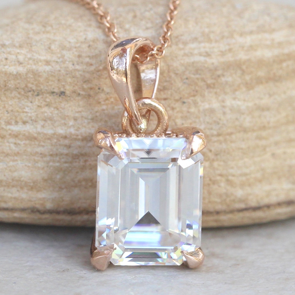 This Emerald Cut Lab Diamond Pendant is part of our Beverly Collection, which is characterized by a gorgeous, genuine gemstone surrounded by a Hidden Halo of Diamonds.