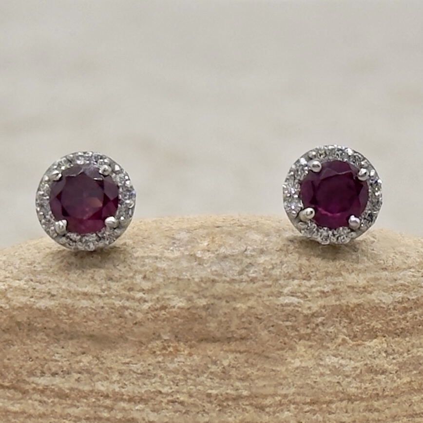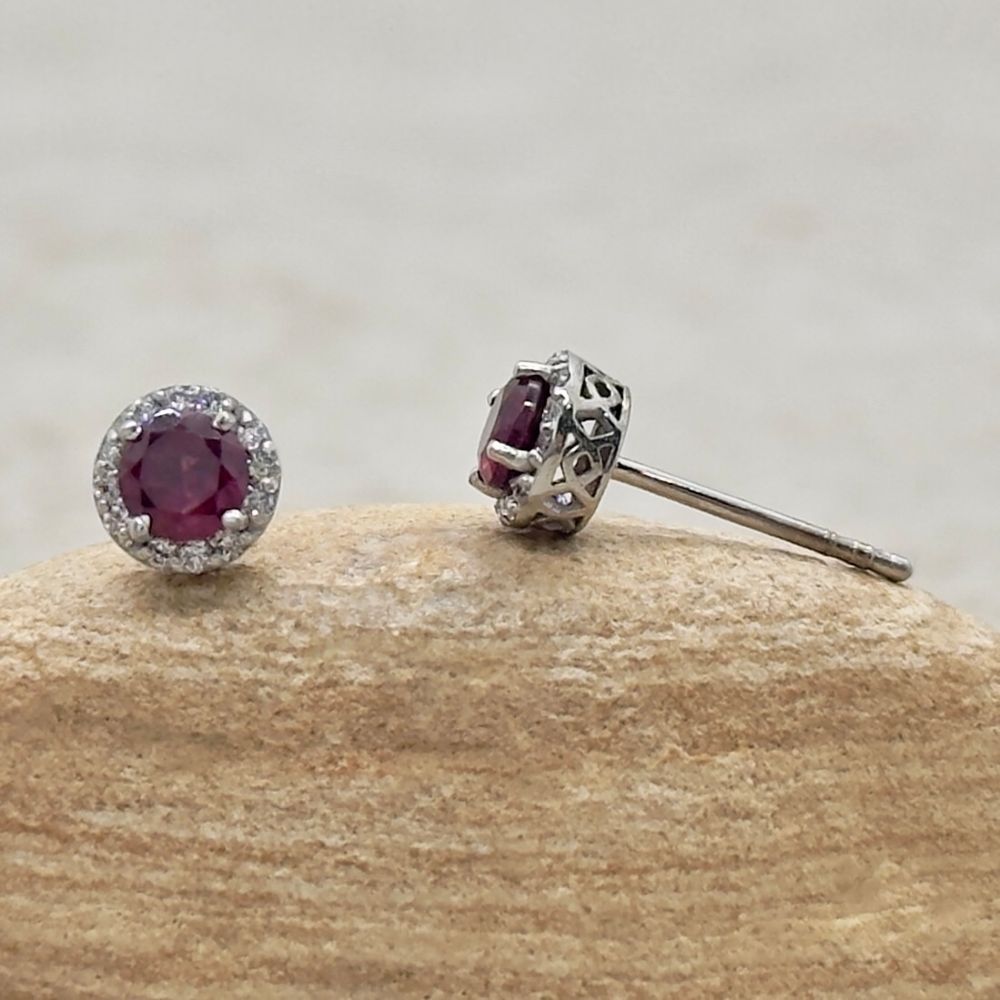 These Garnet and Diamond Filigree Earrings feature two genuine, AAA red garnets surrounded by a halo of diamonds! They make the perfect gift for your January Baby!