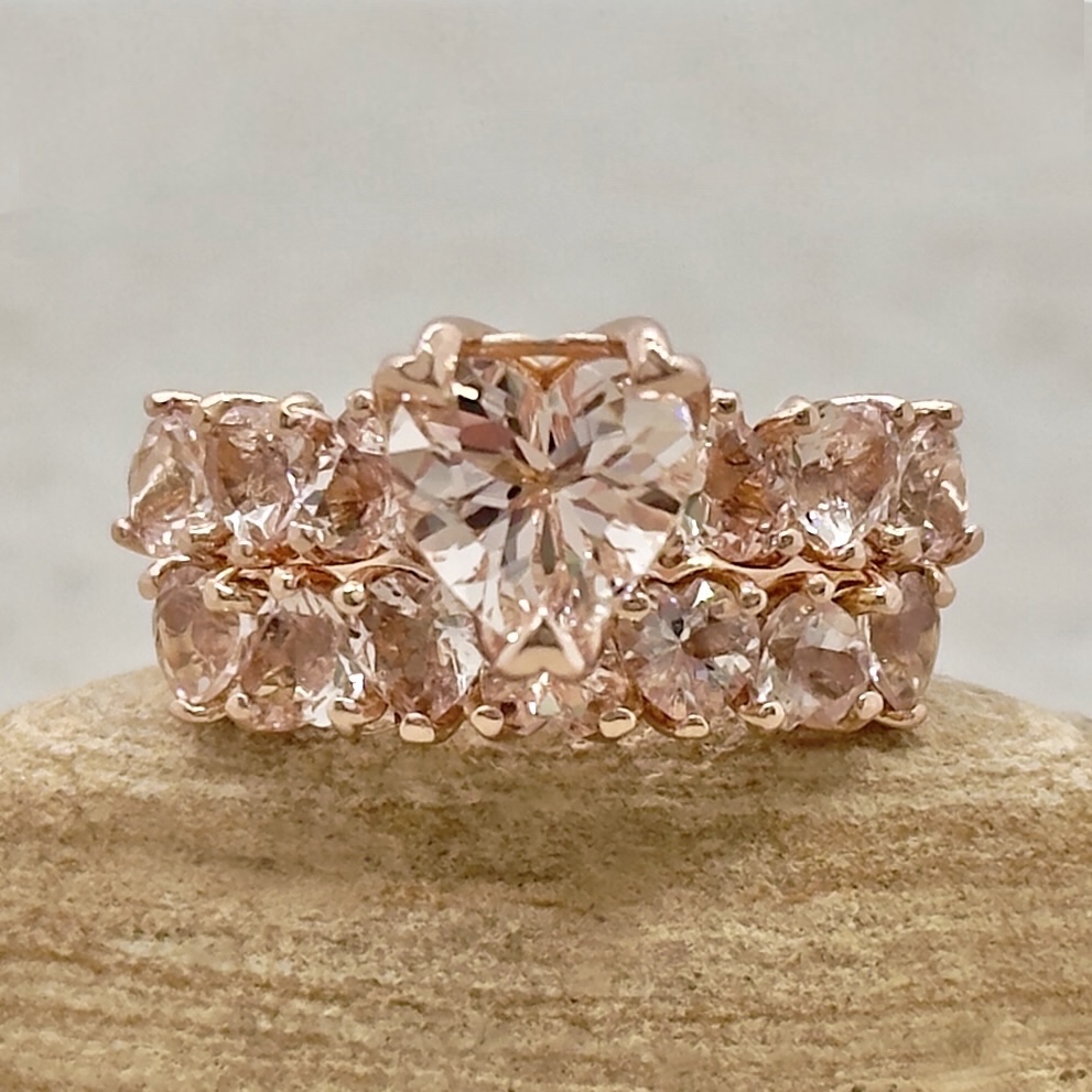 Wedding Ring Side Stones: 7 Genuine AAA Peachy Pink Morganites, averaging 4mm Heart Cut and 1.47 carats total.
