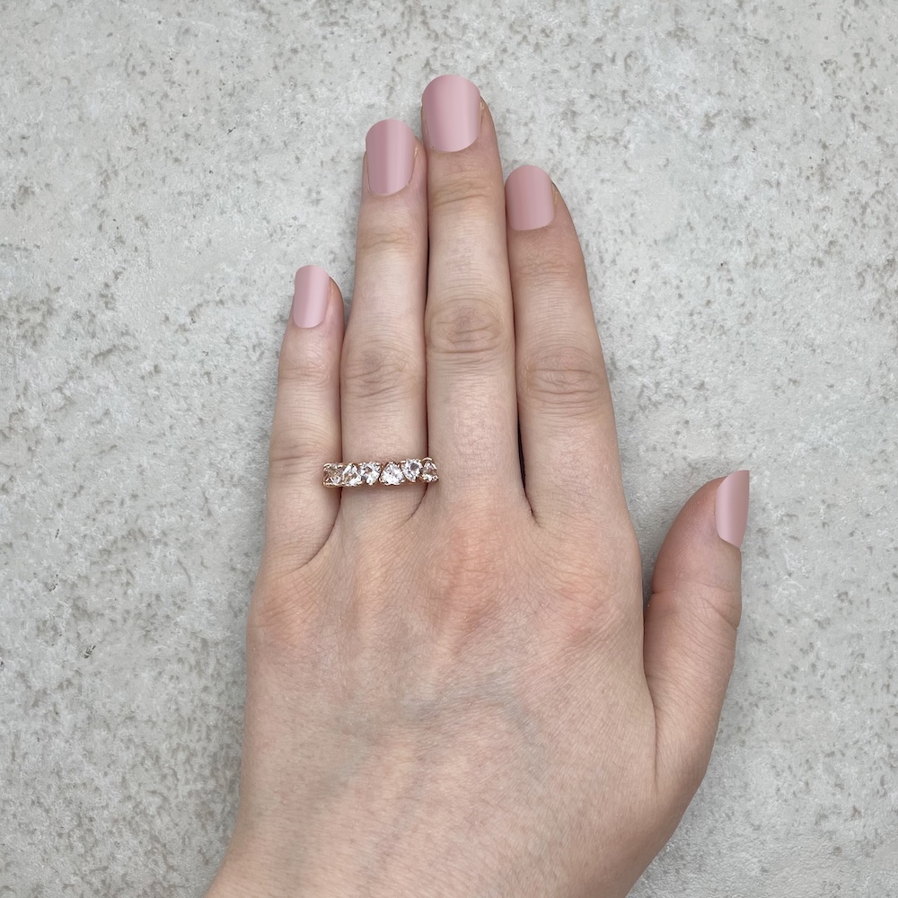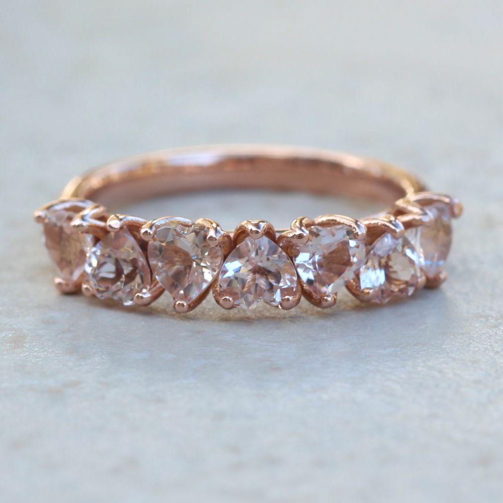 This Heart Morganite Wedding Band matches the rings in our Lily Collection, which feature stunning gems held by Lily Flower Petal Prongs!