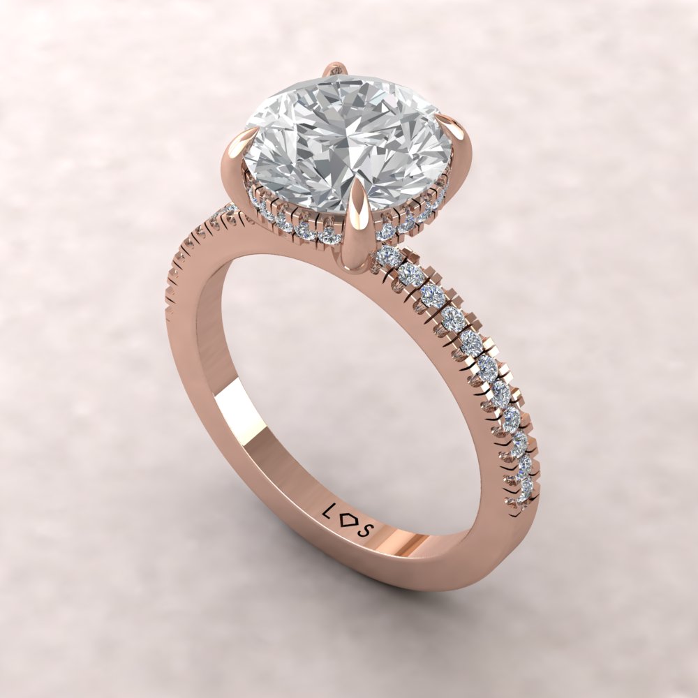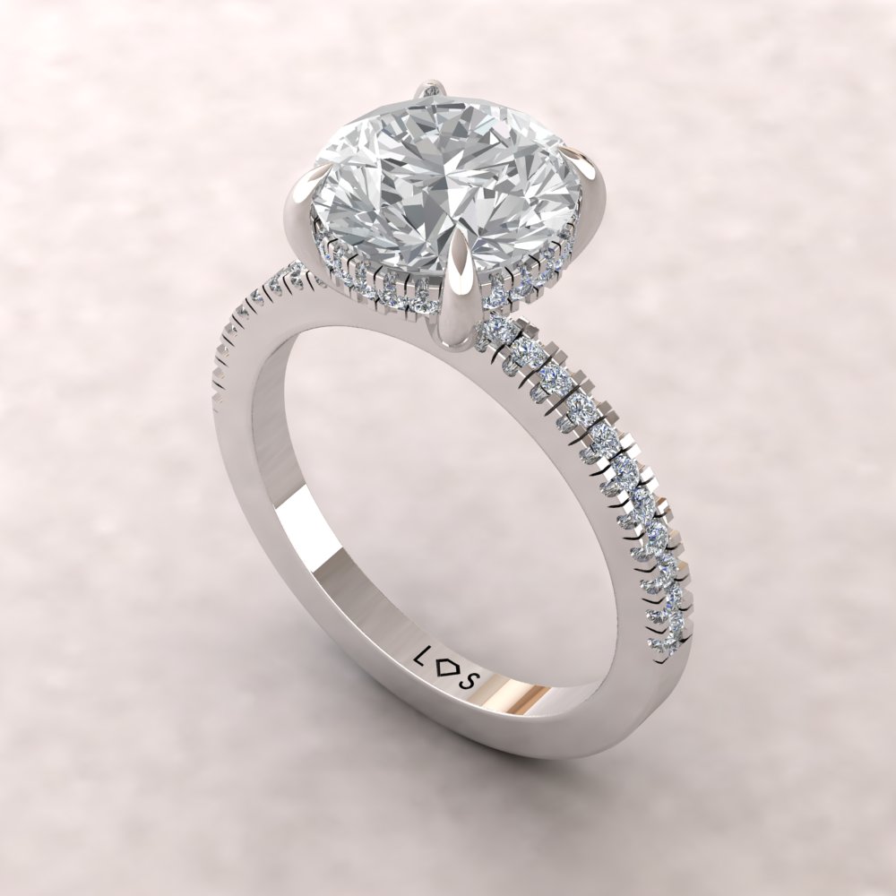 This Lab Diamond Engagement Ring is part of our Beverly Collection, which is characterized by a gorgeous, genuine gemstone held by Claw Prongs. All diamonds in the Hidden Halo and Half Eternity Shank are hand set in a secure, 4-prong style!