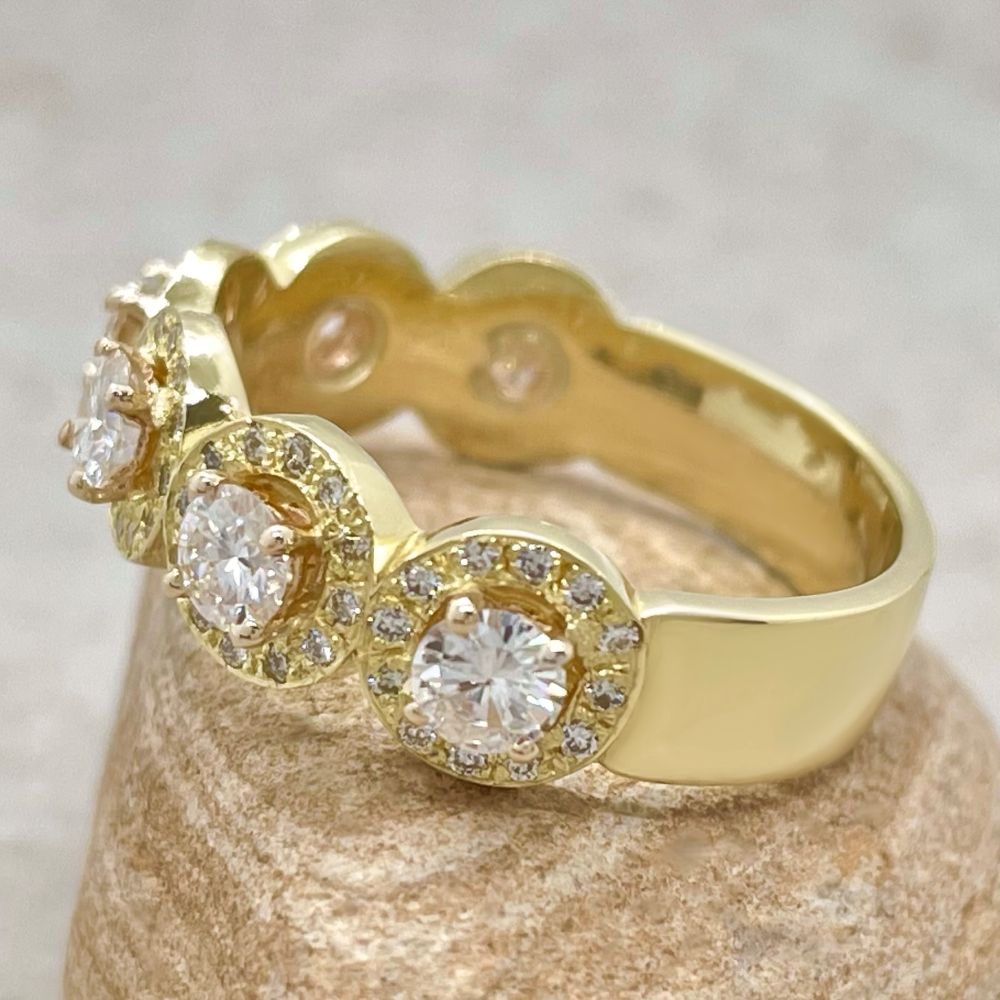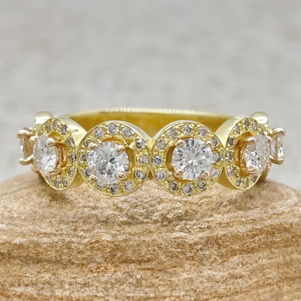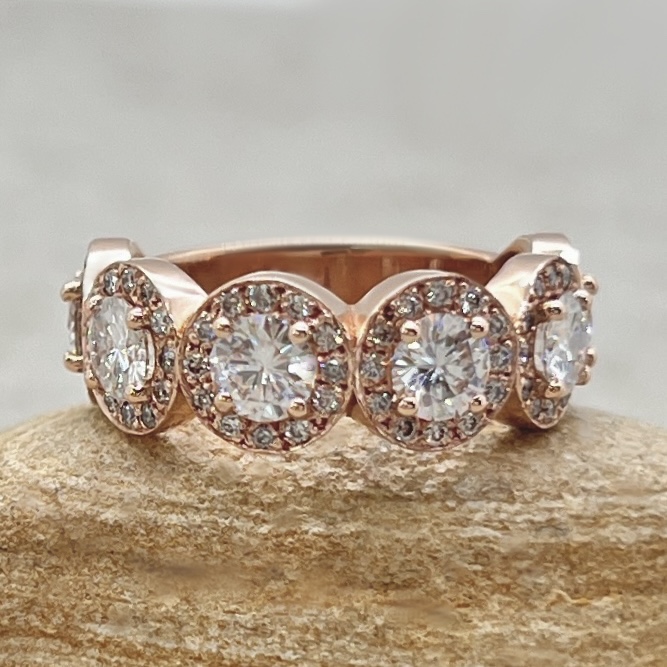 This Lab Diamond Halo Band is a wonderful band for your Anniversary Ring, to add to your Ring Stack, or pair with your Engagement Ring! This is our 6 halo version.