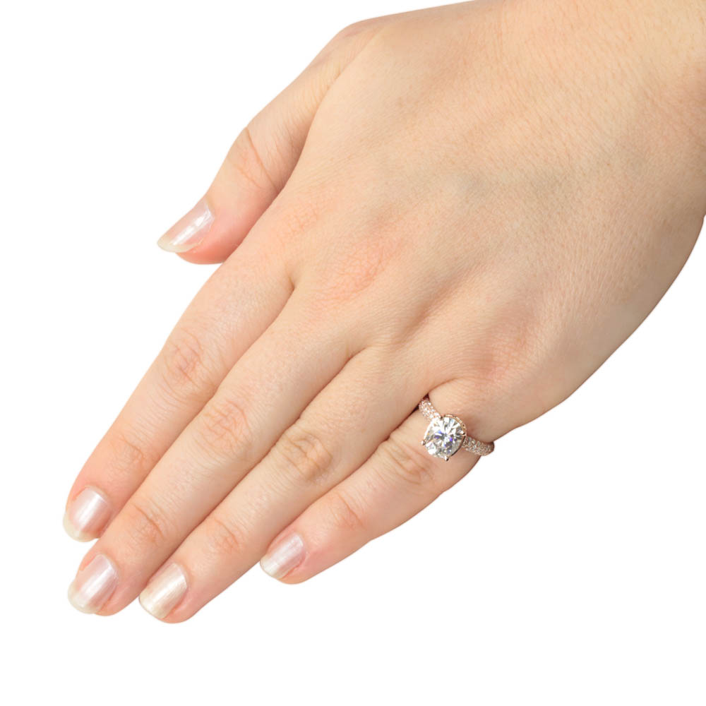 Charles and Colvard Forever One Moissanite, averaging 9x7mm Oval Cut and 2.10 carats.