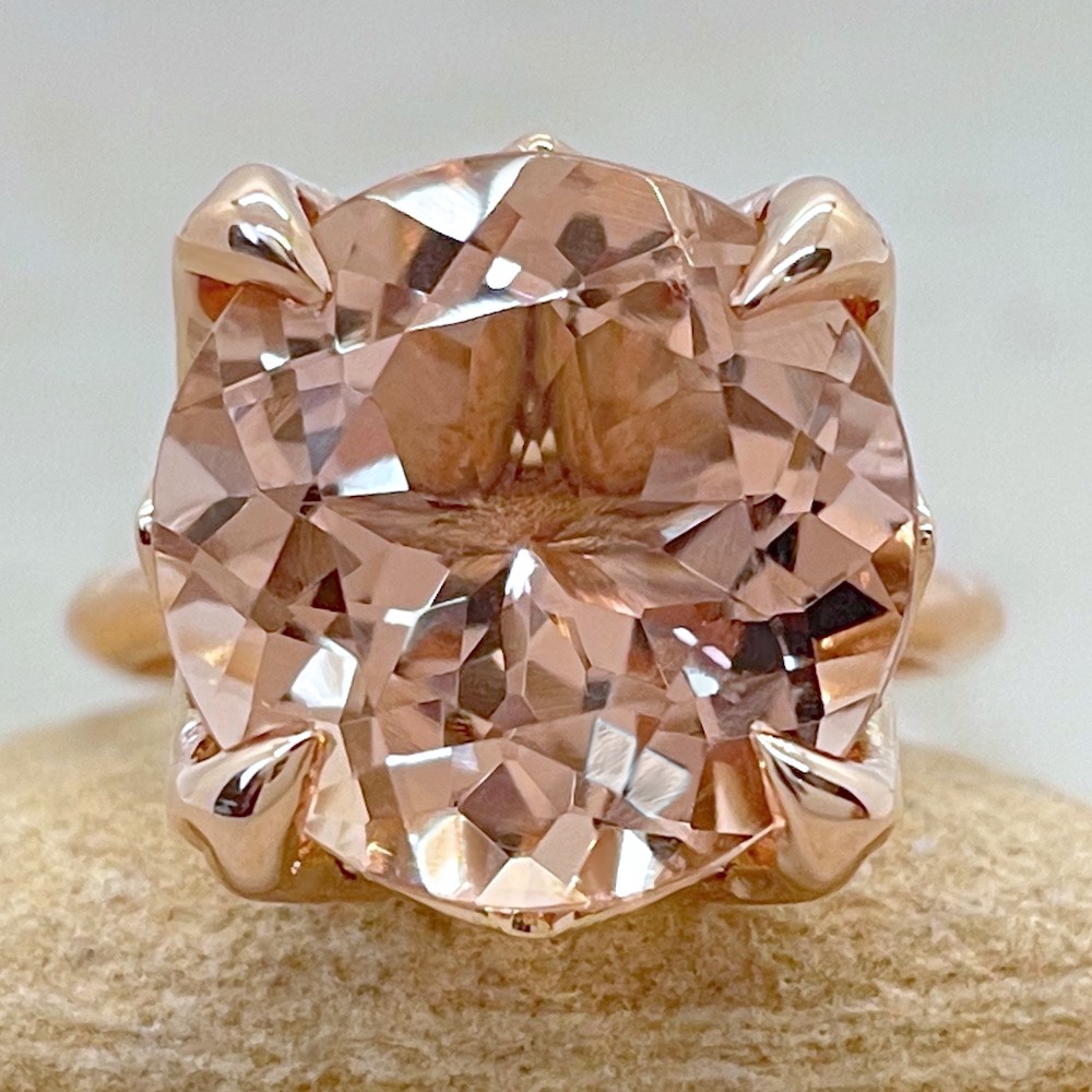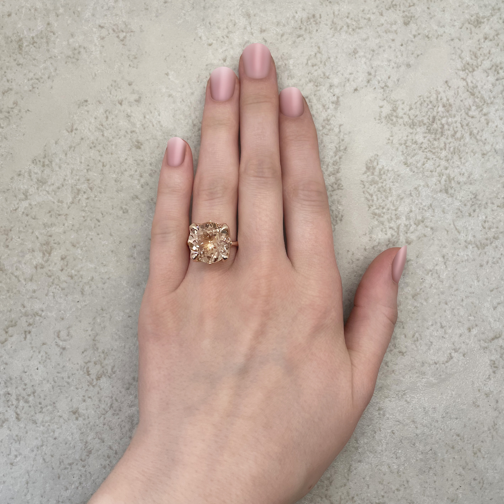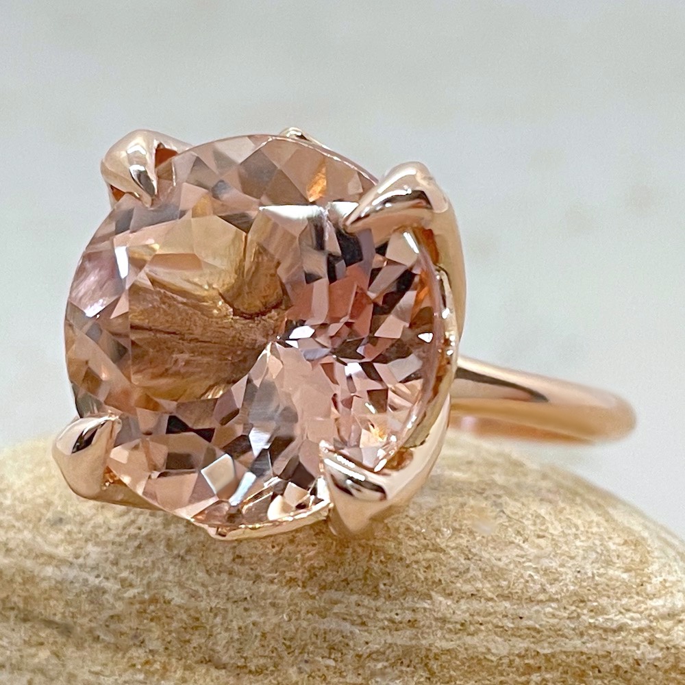 Large Round Morganite Engagement Ring is part of our Lily Collection, which features a stunning center stone held by Lily Flower Petal Prongs!