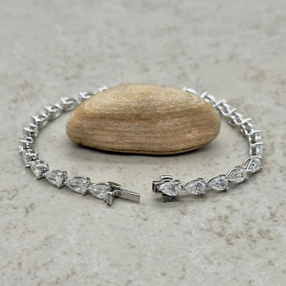 This Pear Cut Diamond Tennis Bracelet features high quality Teardrop Lab Grown Diamonds averaging .30 carats and 6x4mm each! This Classic Bracelet is available with Natural, Organic Diamonds upon request.
