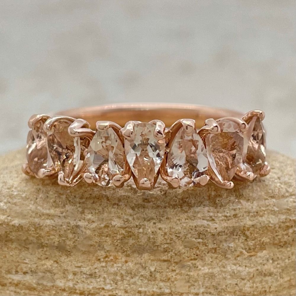 This Pear Morganite Ring matches the rings in our Lily Collection, which feature stunning gems held by Lily Flower Petal Prongs!