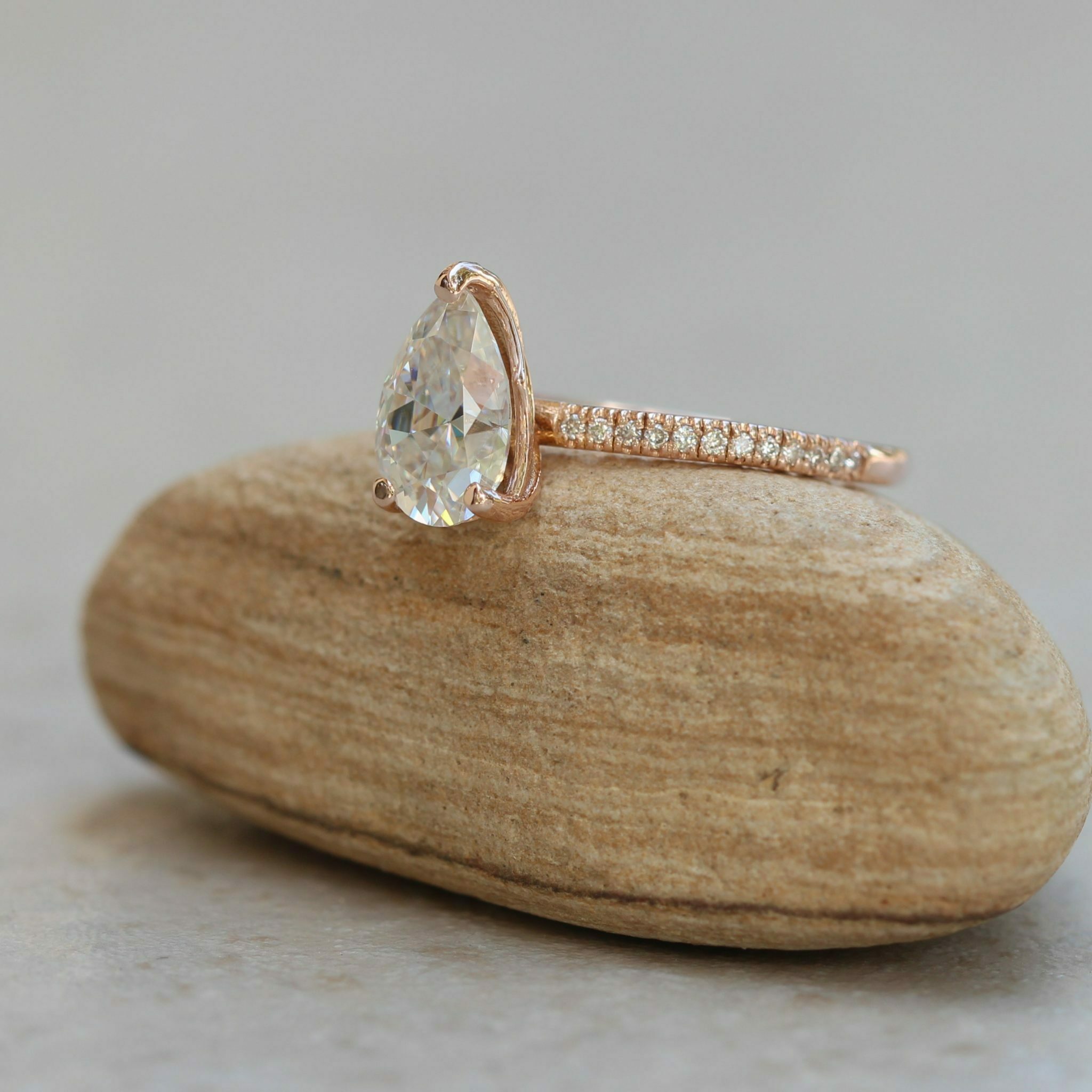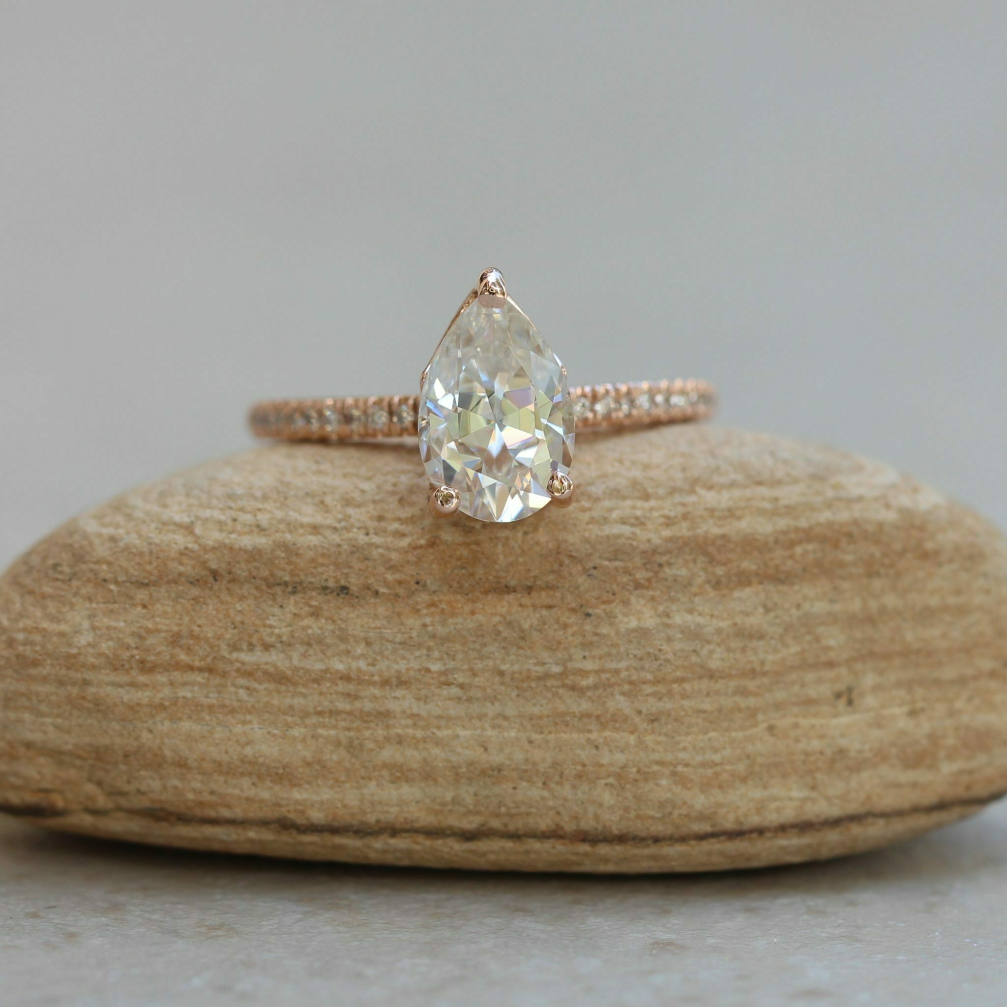 2. We will replace the morganite with a beautiful Charles and Colvard pear cut 6x9mm moissanite. It will be Forever One GHI.
