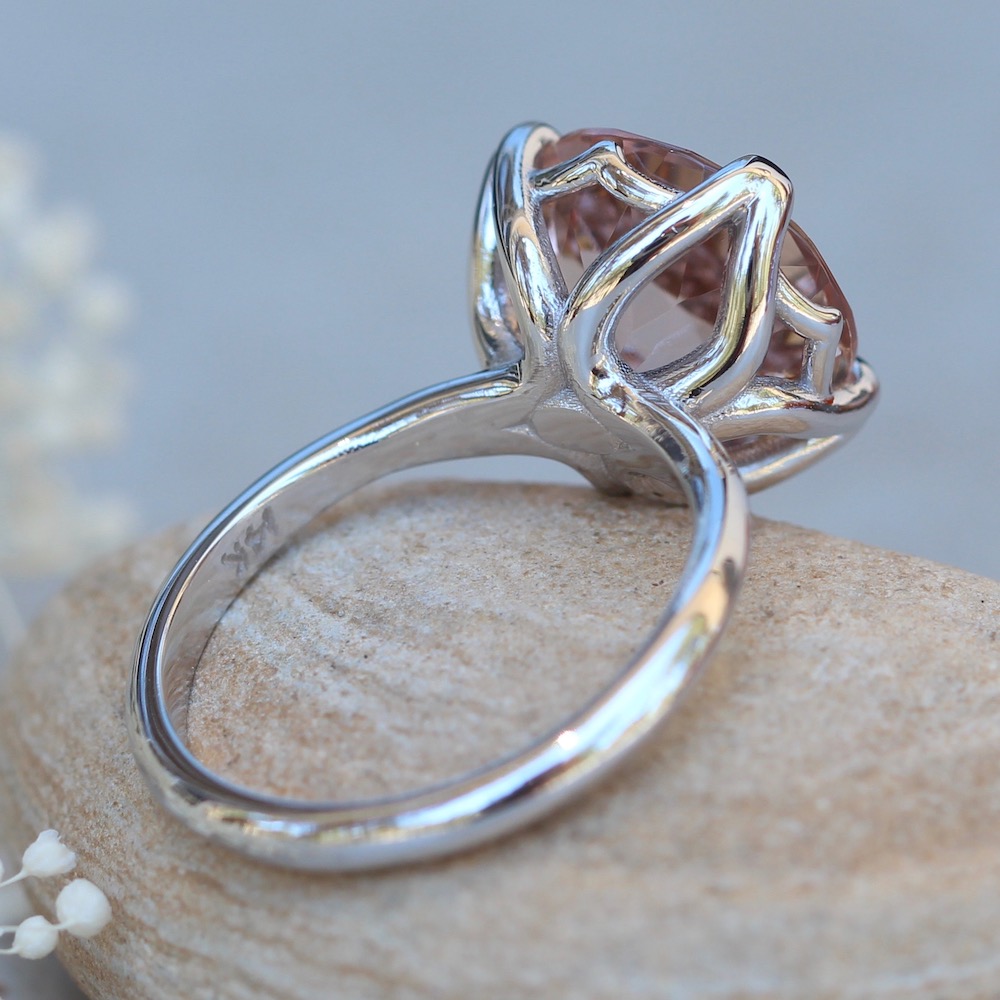 This Round Morganite Solitaire Ring is part of our Lily Collection, which features a stunning center stone held by Lily Flower Petal Prongs!