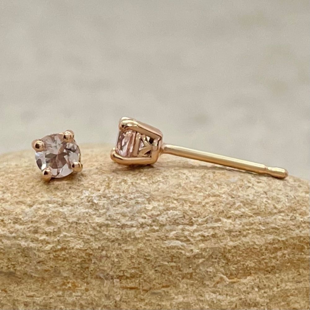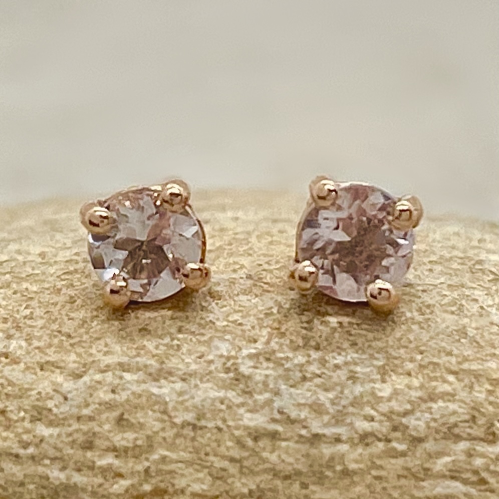 These Small Morganite Stud Earrings are the perfect gift! These can be worn alone, or grace second holes. Tiny filigree wraps around the sides.